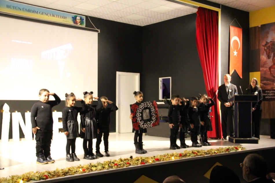 İlçe Milli Eğitim Müdürlüğü konferans salonunda yapılan 10 Kasım Atatürk'ü Anma programında, Cumhuriyetimizin kurucusu, Mustafa Kemal Atatürk'ün ebediyete irtihalinin 86. yıl dönümü dolayısıyla, Hüsnü M. Özyeğin Ortaokulu öğrenci ve öğretmenleri tarafından hazırlanan 10 Kasım Atatürk'ü Anma Programı gerçekleştirildi.