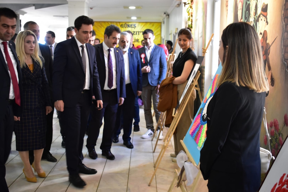 İlçe Milli Eğitim Müdürlüğü toplantı salonunda öğretmen ve öğrenciler tarafından yapılan resimlerin sergi açılışı yapıldı.