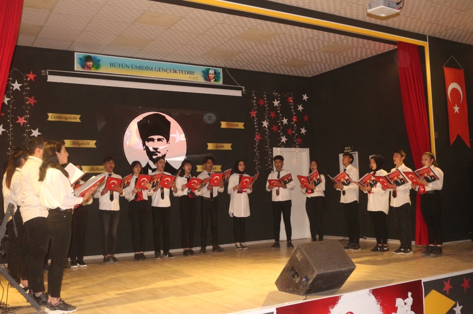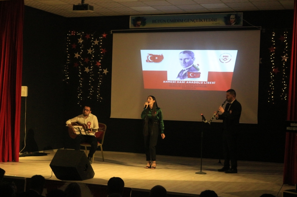 Doğubayazıt İlçe Milli Eğitim Müdürlüğü toplantı salonunda Ahmedi Hani Anadolu Lisesi okul idaresi ve öğrencileri tarafından düzenlen programda Saygı duruşu ve İstiklal Marşı’nın ardında Doğubayazıt Gençlik ve Spor İlçe Müdiresi Sevim Şimşek Konyar, bir konuşma yaptı. Ahmedi Hani Anadolu Lisesi yönetimi ve öğrencileri tarafından hazırlanan Program; Sinevizyon Gösterimi, Gençliğe Hitabenin Okunuşu, Gençliğin Ataya Cevabı, Oratoryo gösterisi, Şiir Okunması, Koronun Türkü ve Marş Seslendirmesi, Halk Oyunları Gösterisi, dereceye girenlere verilen ödüller ile program sona erdi.