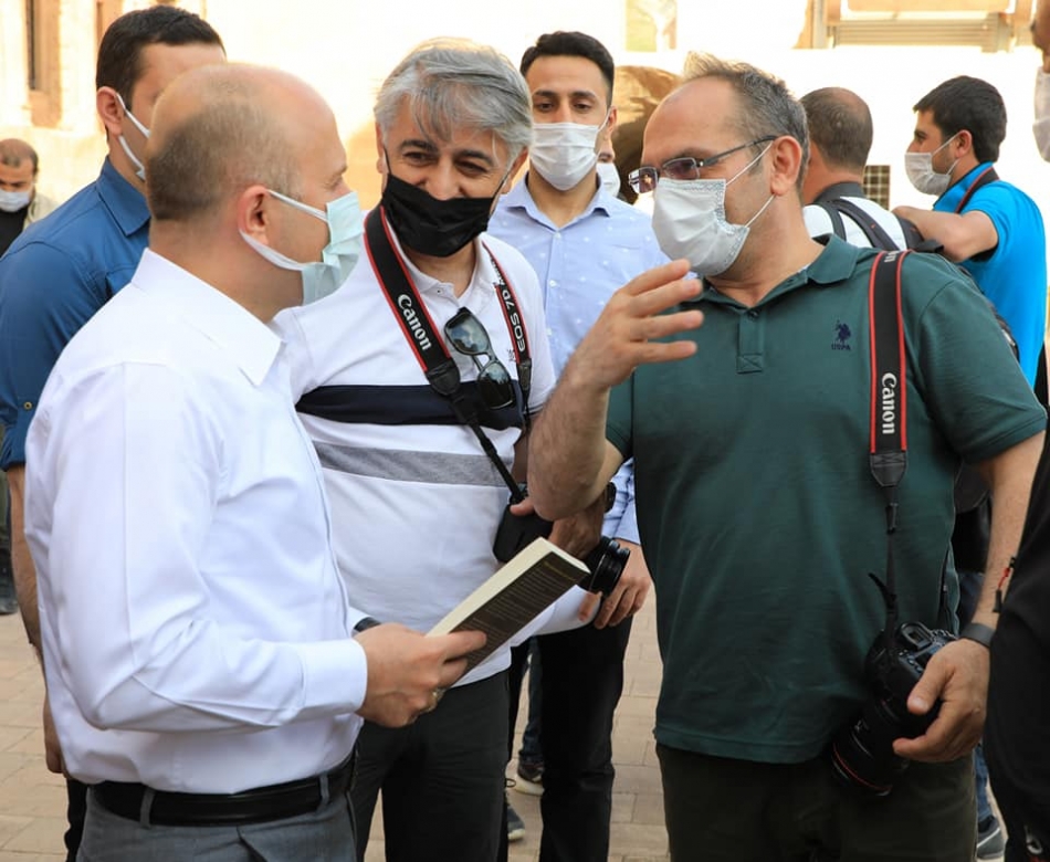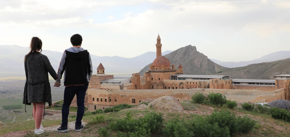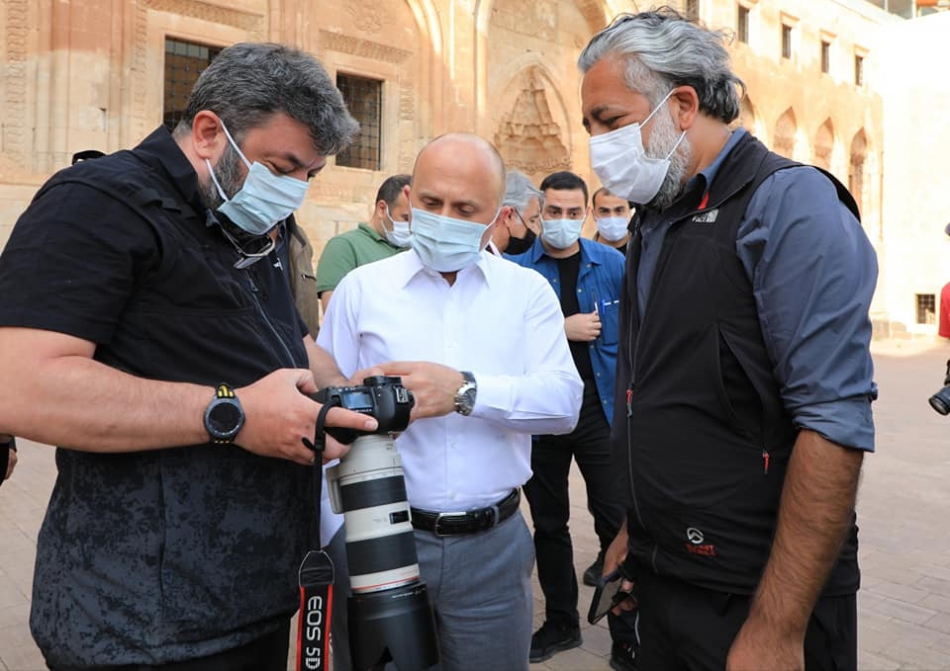 Vali Dr. Osman Varol, taşın nakış gibi işlendiği Osmanlı mimarisinin görkemli yapısı akşam güneşi ile altın sarısına boyanmış İshak Paşa Sarayı'nda gün batımını fotoğraflayan 2. Ulusal Foto Safari ekibine eşlik ederek bu eşsiz manzarayı ölümsüzleştirdi.