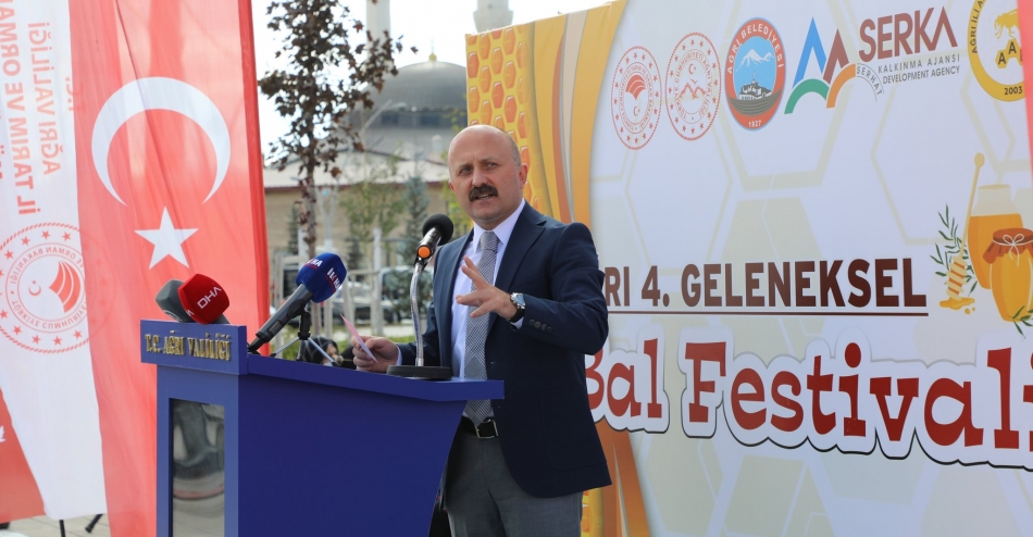 Ağrı'da bulunan endemik geven bitkisinin çiçeklerinden elde edilen Ağrı Geven Balı ve arı ürünlerinin yerel ve ulusal alanda tanıtımını sağlamak, üreticilere ürünlerini tanıtma ve pazarlama fırsatı sunmak, bal ve diğer arı ürünlerinin sağlığımıza olan katkısı konusunda vatandaşları bilinçlendirmek ve bal üretimini arttırarak Ağrı’nın ekonomisine katkı sağlamak amacıyla Ağrı Valiliği koordinesinde, Ağrı Belediyesi, Tarım ve Orman İl Müdürlüğü, Serhat Kalkınma Ajansı ve Arı Yetiştiriciler Birliğinin katkıları ile 4’üncüsü düzenlenen Ağrı Geleneksel Bal Festivali’nin Açılış Programı, Ağrı Millet Bahçesi’nde gerçekleştirildi.