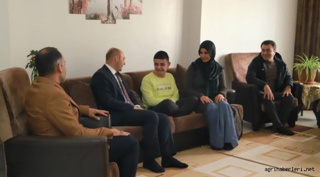Ekinci, Doğubayazıt’ta şehit ailelerinden bir anne, çocuklarına hem annelik hem babalık yapan ve engelli olan çocuklarını büyüten aileyi ziyaret etti.