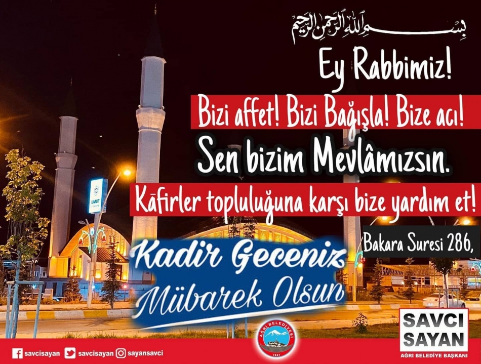 AĞRI BELEDİYE BAŞKANI SAVCI SAYAN'IN KADİR GECESİ MESAJI
