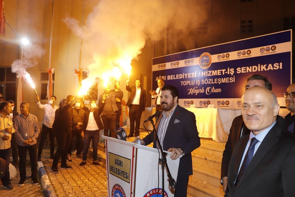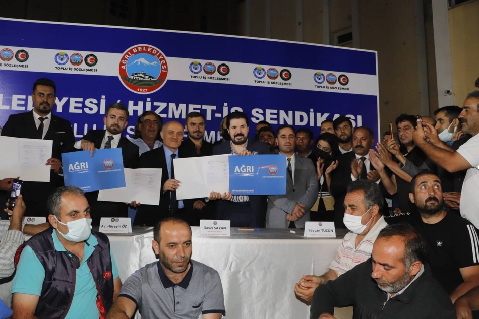 Düzenlenen imza törenine Ağrı Belediye Başkanı Savcı Sayan, Hizmet-İş Sendikası Genel Başkan Vekili Av. Hüseyin Öz, Hizmet-İş Sendikası Ağrı il temsilcileri ile belediye işçileri katıldı.