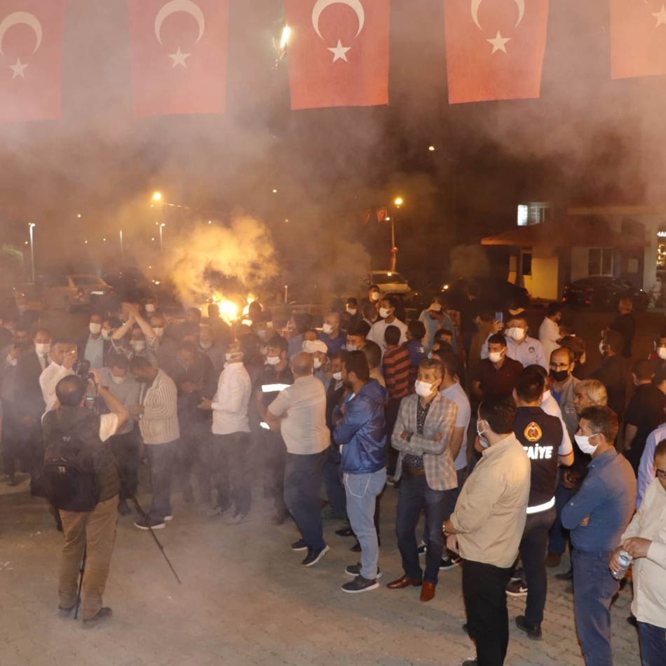 İşçiler Belediye binası önünde yaptıkları havai fişek gösterisi, davul ve zurna eşliğinde sevinçlerini Belediye Başkanı Savcı Sayan ile halay çekerek paylaştılar.