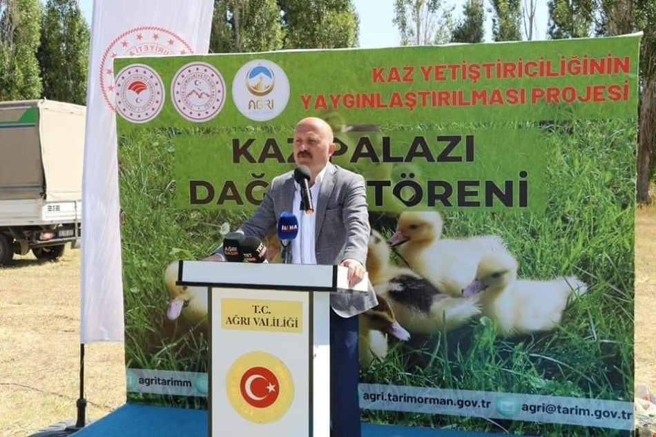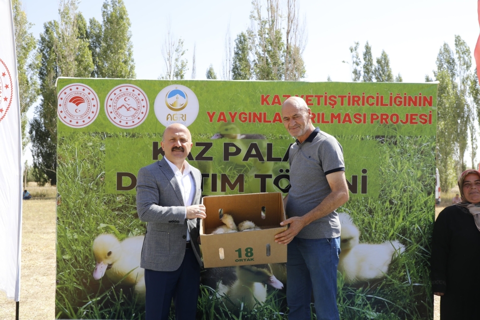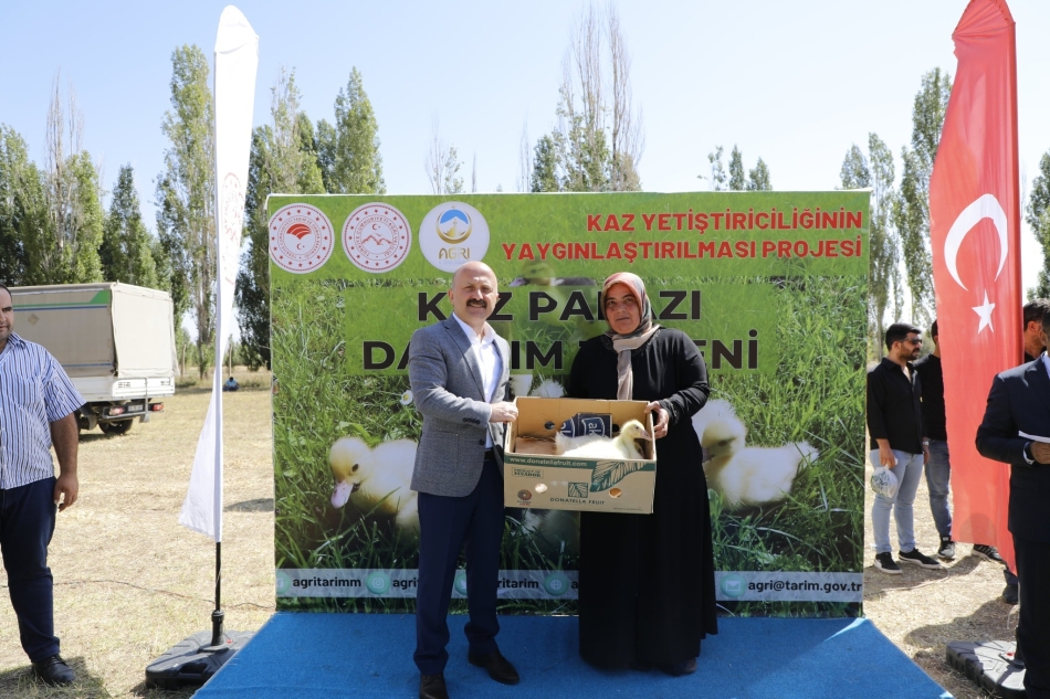 Ağrı'da kaz yetiştiriciliğinin yaygınlaştırılması amacıyla 100 çiftçiye 5000 kaz palazı dağıtıldı.