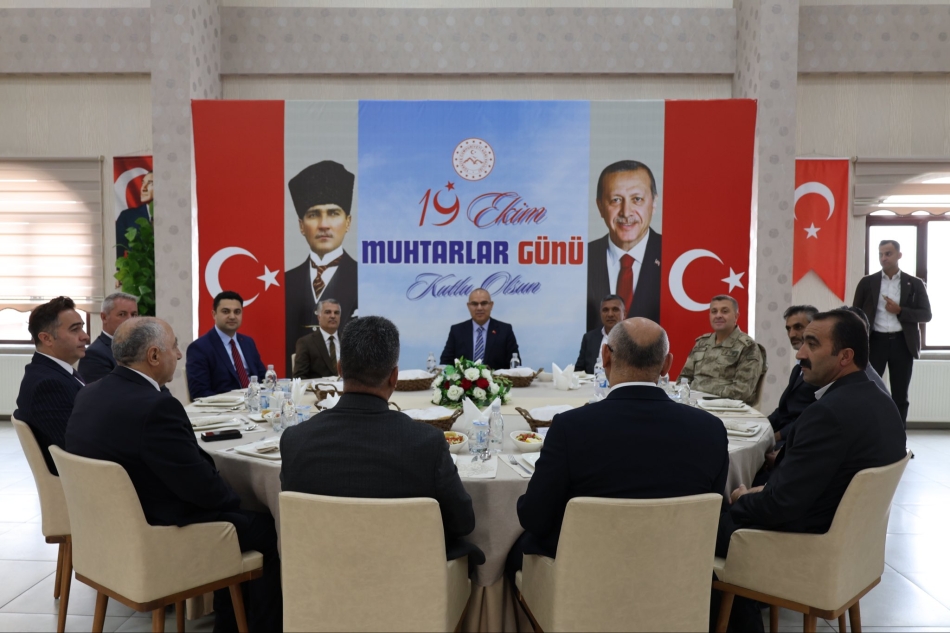 Ağrı Valisi Mustafa Koç, beraberindeki il protokolü üyeleriyle birlikte, 19 Ekim Muhtarlar Günü dolayısıyla Ağrı Burçin Uysal Öğretmenevi'nde düzenlenen yemekli programa katılarak il merkezi ve köylerde görev yapan muhtarlarla bir araya geldi.