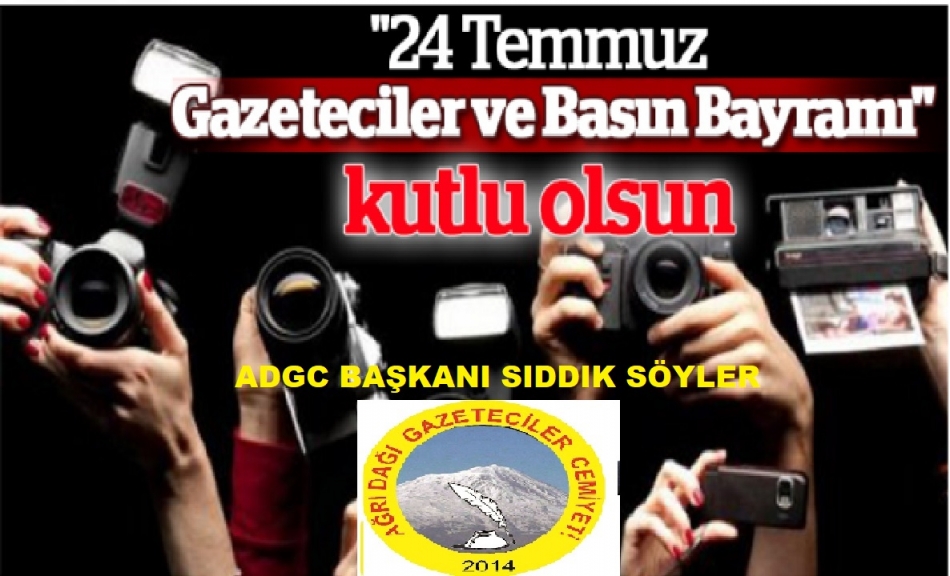 Ağrı Dağı Gazeteciler Cemiyeti Başkanı Sıddık Söyler 24 Temmuz Gazeteciler ve Basın Bayramı dolayısıyla kutlama mesajı yayımladı.
