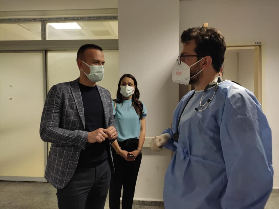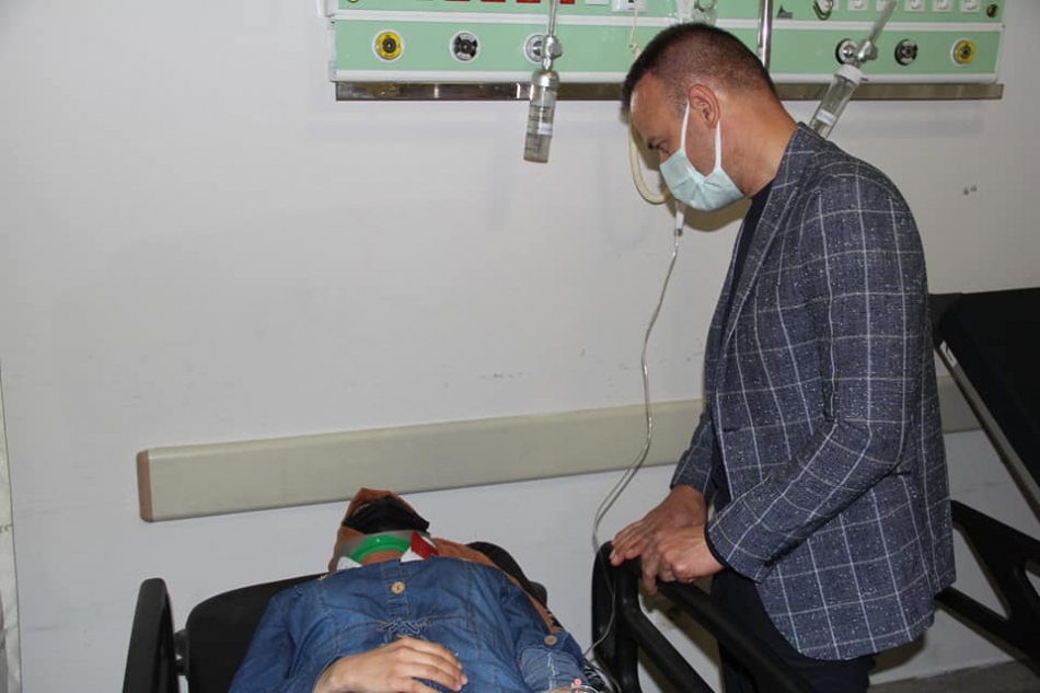 Yaralı bir öğretmenin babasıyla sohbet eden Tekin, daha sonra hastaneden ayrıldı.