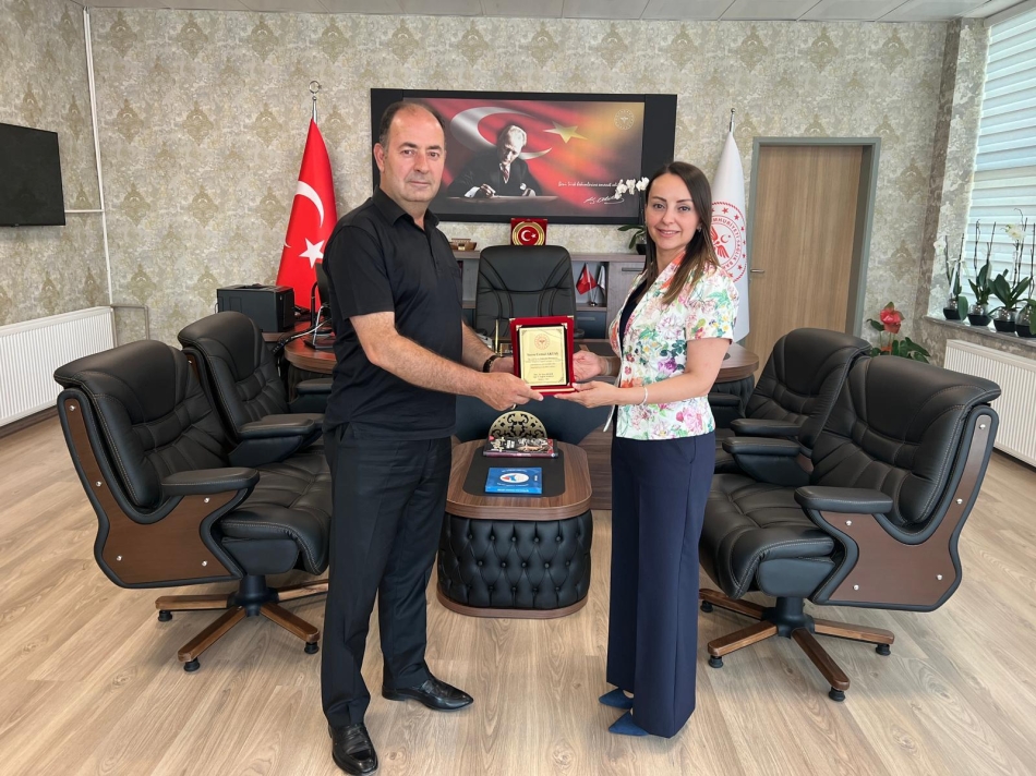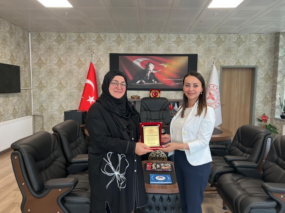 Ağrı İl Sağlık Müdürü Doç. Dr. Esra Beşer, uzun yıllar boyunca kurumda özveriyle çalışan üst düzey yöneticilere, görev sürelerinin tamamlanması nedeniyle plaket takdim ederek teşekkürlerini iletti.