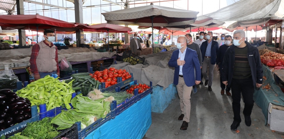 Vali Dr. Osman Varol ve İl Protokol Üyeleri, "Pazar Yerleri Genelgesi" kapsamında Fevzi Çakmak Semt Pazarında Koronavirüs denetimi gerçekleştirerek pazar esnafına hayırlı ve bereketli kazançlar diledi.