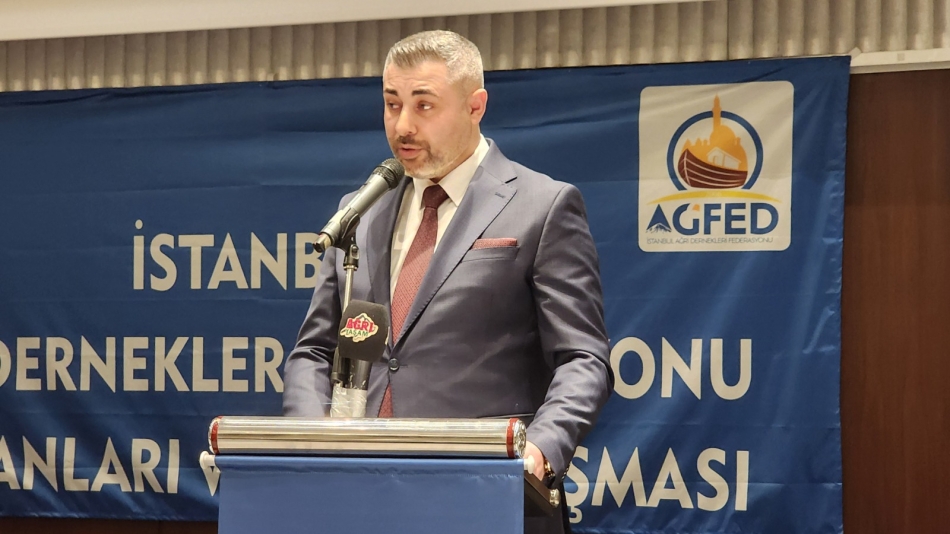 Vefa Kızılaslan’ın yaptığı konuşması “Görüş ve önerilerinize önem veriyoruz. Federasyonumuz 2006 yılında 5 dernekle kuruldu. Kuruluş tüzüğüne her dernekten 5 delege alındı. Kurucu başkanımıza ve 5 yürekli arkadaşımızı selamlıyor onlara tekrar teşekkür ediyorum. Bugün 28 derneğimizle yola devam ediyoruz. Federasyon olarak bizlerin temel görevi toplumsal dayanışmayı koordine etmektir. Hayırseverler ile harekete geçerek öğrencilerimize burs verdik. Bursiyer ve hayırseveri buluşturduk. Salonumuzda bulunan konuklarımız bu tip yardımlar yapmaktadır. Biz her iş insanından burs temin ederek bu hayır hareketini Ağrılılar adına devam ettirmektir. Diğer yardımların nasıl ve kime yapıldığını hayırseverlerimize ulaştırıyoruz. Lobi çalışmalarımızda kültürümüzü korumak içinde çalışıyoruz. Bu anlayışla İstanbul çapında etkinlik yaptık. Ağrı Tanıtım Günleri’ni daha coşkulu yapmayı hedefliyoruz. Hemşerilerimizin genel ve yerel siyasette başarılı olması için çalışıyoruz. Her ilçede hemşerilerimizi destekledik. İstanbul tarihinde ilk defa Eyüp Sultan’da Ağrılı bir belediye başkanı seçtirmeyi başardık. Bu çalışmaları yaparken siyasallaşmadan ve STK itibarını meze etmeden yürüttüğümüzü gururla belirtmek isterim” dedi.
