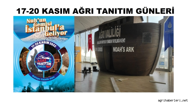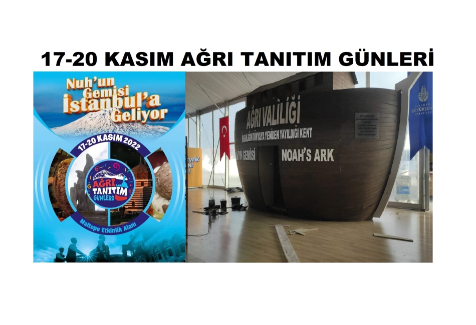 Ağrı Valiliği ile İstanbul’da 18 Ağrı derneğin oluşturduğu Ağrı Dernekler Federasyonu, Nuh’un Gemisi İstanbul’a Geliyor teması ile 17-20 Kasım tarihleri arasında Maltepe etkinlik alanında Ağrı tanıtım günleri yapılıyor.