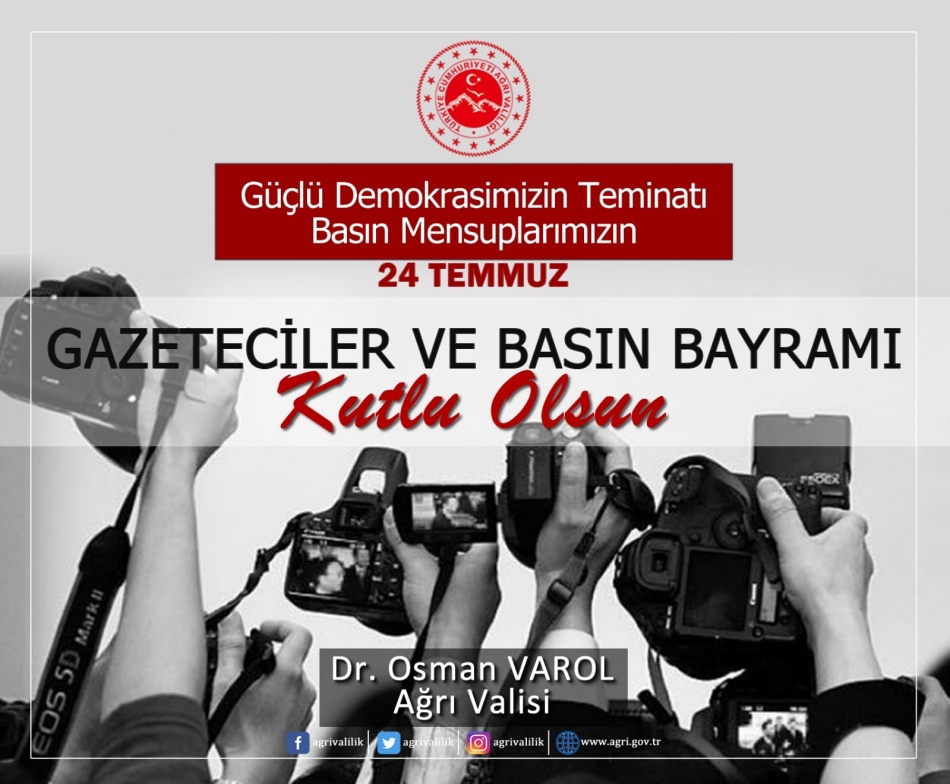 Ağrı Valisi Dr. Osman Varol, 24 Temmuz Gazeteciler ve Basın Bayramı dolayısıyla bir mesaj yayımladı.