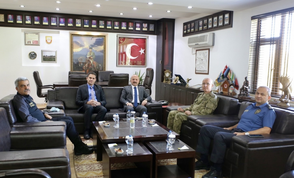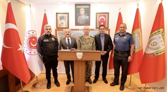 Vali Dr. Osman Varol’a ziyaretlerinde Doğubayazıt Kaymakamı Mehmet Kemal Akpınar, İl Emniyet Müdürü Nihat Özen ve Doğubayazıt İlçe Emniyet Müdürü Ömür Arık eşlik ettiler.