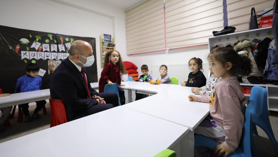 Açılışın ardından anaokulunda incelemelerde bulunan ve öğrencileri sınıflarında ziyaret eden Vali Varol; eğitimin bir millet için, bir milletin geleceği için önem verilmesi gereken en önemli konulardan birisi olduğunu belirterek geleceğimizin teminatı olan miniklerimizle yakinen ilgilendi.