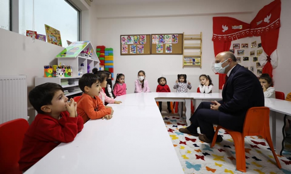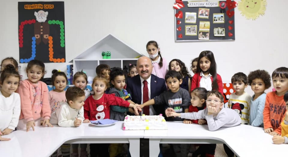 Evlatlarımızla sohbet eden Vali Varol, çeşitli hediyeler verdiği öğrencilerle pasta kesti. Daha sonra yetkililerden Anaokulunun kapasitesi ve donatıları hakkında detaylı bilgi alan Vali Dr. Osman Varol, geleceğimizin mimarı kıymetli öğretmenlerimizle bir araya gelip öğretmenlik mesleğinin önemine vurgu yaparak onlara başarılar diledi.