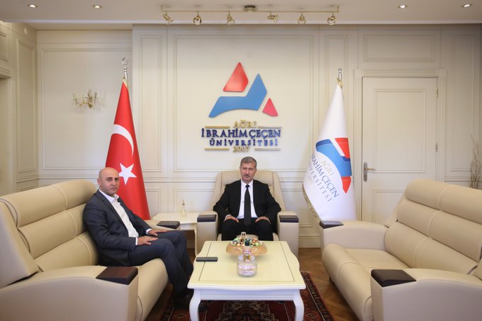 Rektör Gülçin, Doğubayazıt Ticaret ve Sanayi Odası Başkanı ve Can Holding Yönetim Kurulu Başkanı Cemal Can ile Ağrı Ticaret ve Sanayi Odası Başkanı Saim Alpaslan'ı da makamında kabul etti.