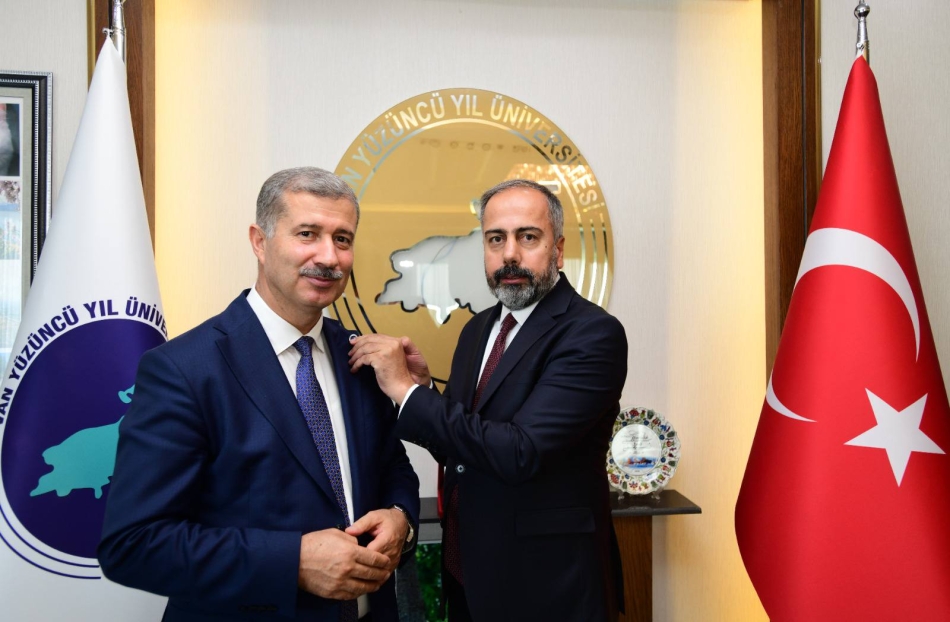AİÇÜ Rektörü Gülçin'e Mezun Olduğu Van YYÜ Rozeti Takdim Edildi