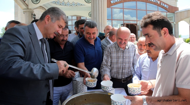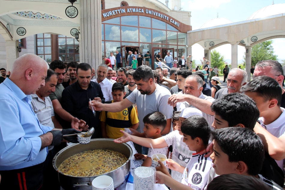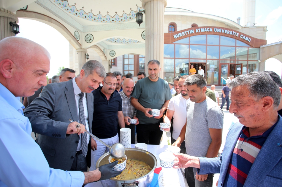 AİÇÜ Rektörü Gülçin, Muharrem Ayında Cami Bahçesinde Bol Kepçe Aşure Dağıttı