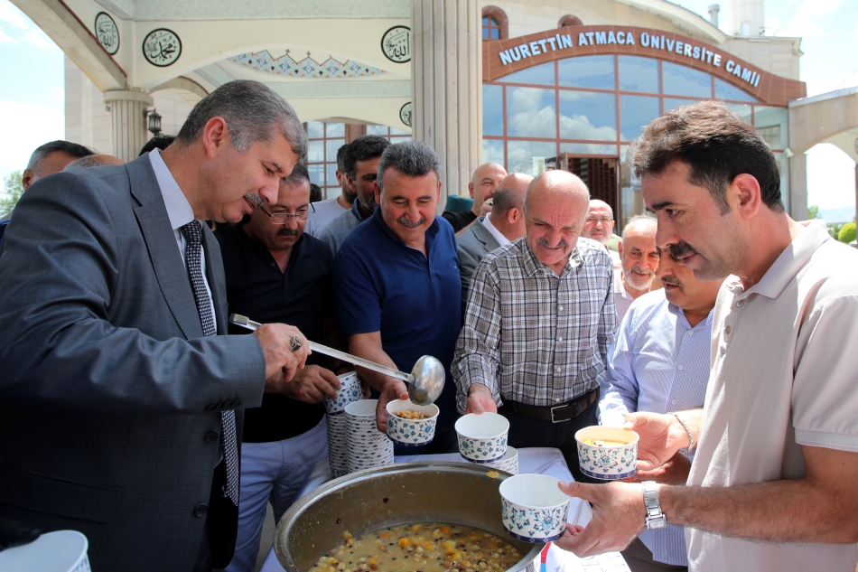 Etkinlik kapsamında, Rektör Prof. Dr. İlhami Gülçin, cami bahçesinde kurulan kazanların başına geçerek, "Birlik ve beraberliğimizin simgesi olan aşureyi paylaşmanın mutluluğunu yaşıyoruz" dedi. Namaz çıkışında öğrenciler, üniversite personeli ve mahalle sakinleriyle bir araya gelen Gülçin, aşure ikramının ardından katılımcılarla sohbet etti.