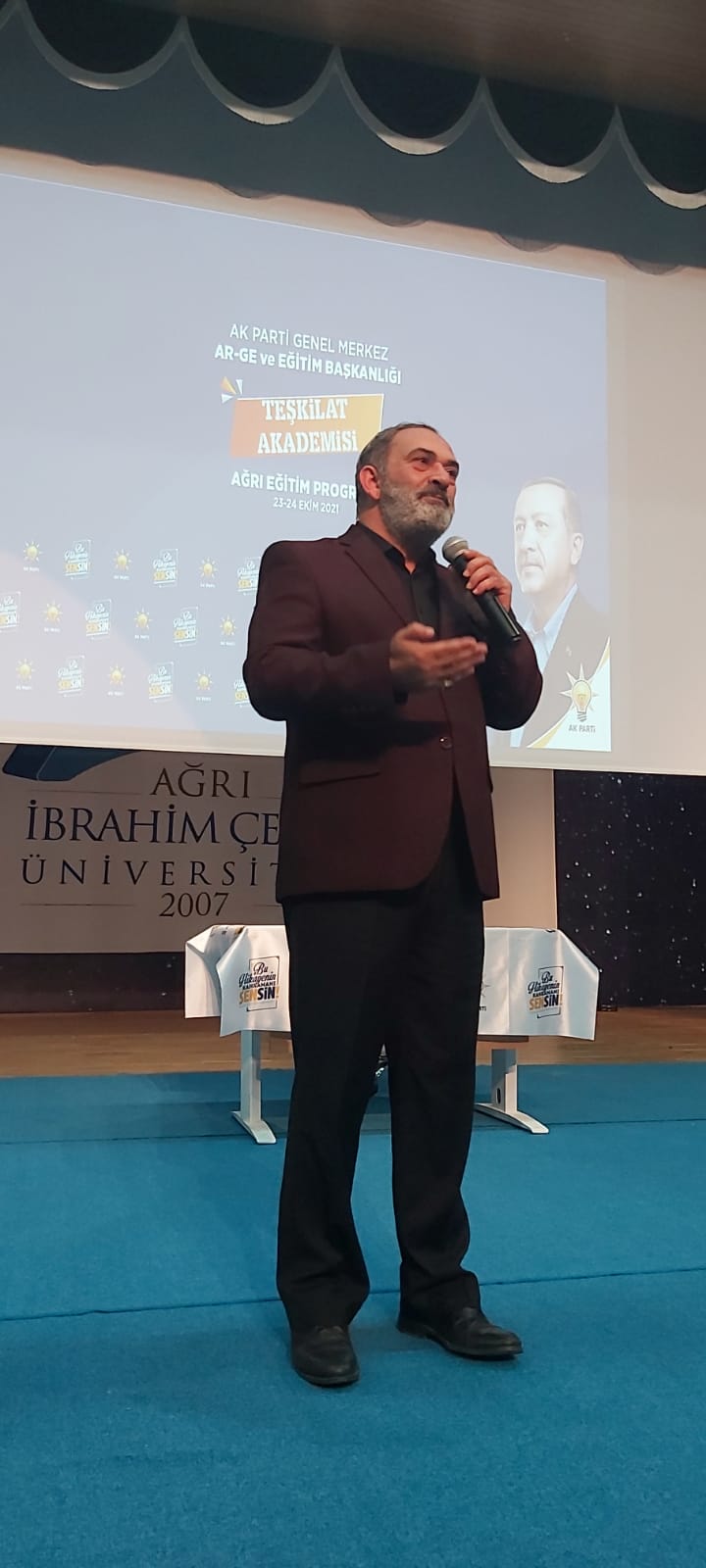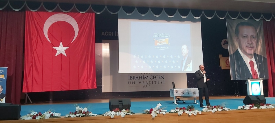 Teşkilat Akademisi Ağrı Eğitim Programı kapsamında Dursun Ali Erzincanlı AK DEĞERLER başlıklı konuşmalarının sunumunu gerçekleştirdi.