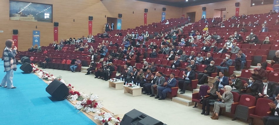 Doğubayazıt’lı yazar ve AK Parti Doğubayazıt İlçe Teşkilatı Sivil Toplum ve Halkla İlişkiler Başkan Yrd. görevini yürüten Esra Can sahneye çıkarak hayat hikayesinde kesintiler anlattı.