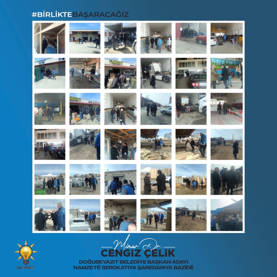 Cengiz Çelik; Şehrimizin her köşesini ziyaret ederek halkımızın nabzını tutmak ve ihtiyaçlarını doğrudan öğrenmek için, mahalle mahalle, sokak sokak dolaşarak vatandaşlarımızı dinliyor, sorunlarını ve beklentilerini not alıyoruz. Şeffaf ve katılımcı bir yönetim anlayışıyla halkımızın taleplerine kulak vererek, onların sesi olmayı ve çözüm odaklı bir yaklaşımla hareket etmeyi amaçlıyoruz. Halkımız ile birlikte şehrimizi daha yaşanabilir ve daha güzel bir yer haline getirmek için yola çıkmış bulunmaktayız. Doğubayazıt halkına söz veriyorum, 31 Mart yerel seçimlerinde teveccüh gösterip bizi Belediye Başkanı yaparlarsa kadim şehrimiz, şehri bazid tarihi, turistik ve ticaret şehri olarak bölgede en yaşanılabilir şehir yapacağımıza söz veriyoruz.