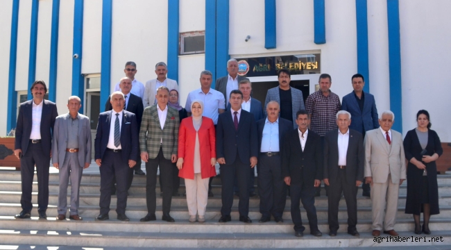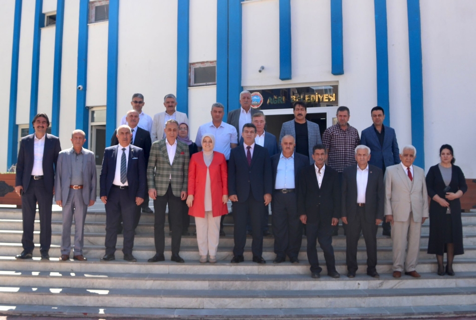 Ağrı Belediye hizmet binasına giden Köseoğlu ve heyetini Ağrı Belediye Başkanı Metin Karadoğan, karşıladı.
