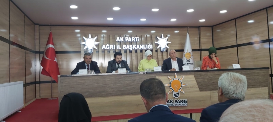 AK Parti Ağrı il binasında AK Parti Genel Merkez Yerel Yön. Bşk. Yrd. Ayşe Sula Köseoğlu, Başkanlığında İlçe Başkanları İl-İlçe-Belde Belediye Başkanları, meclis üyeleri ve il genel meclis üyelerinin katılımı ile bir toplantı gerçekleştirildi.