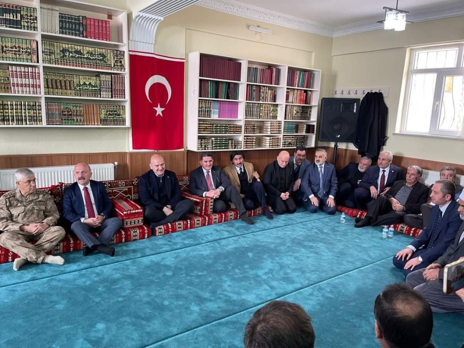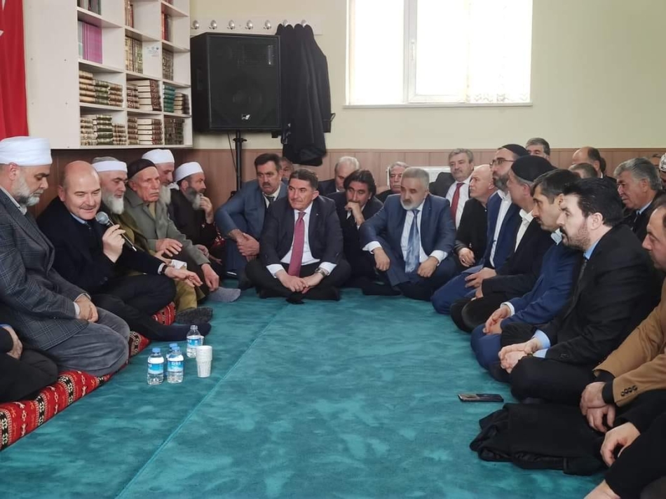 Bakan Soylu, daha sonra Ağrı merkezde İmam Buhari Mescidinde Milletvekili Ekrem Çelebi, Ağrı İl Başkanı Av. Halil Özyolcu, Belediye Başkanı Savcı Sayan, ilçe belediye başkanları Ağrı’nın din adamları, kanaat önderleri, Mele ve Medrese temsilcileri ve talebelerle bir araya geldi.
