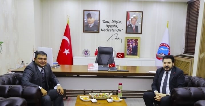 Kaymakam ve Diyadin Belediye Başkan V. Alper Balcı, Ağrı Belediye Başkanı Savcı Sayan'ı makamında ziyaret etti.