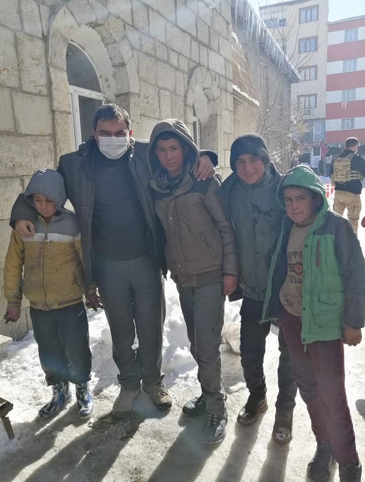 Cuma namazı için Diyadin Merkez Camisine giden Alper Balcı, Cuma namazı çıkışında boş zamanlarında ailelerine destek olmak için ayakkabı boyacılığı yapan çocuklarla bir araya geldi.