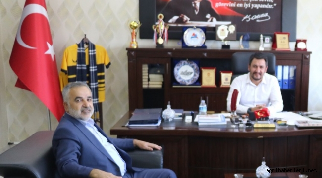 Ağrı Dağı Gazeteciler Cemiyet Bşk. AK Parti Doğubayazıt Belediye Meclis Üyesi ve İshakpaşa Spor Kulübü Bşk. Sıddık Söyler, Gençlik ve Spor İl Müdürü İsmail Çalgan'a hayırlı olsun ziyaretinde bulundu.