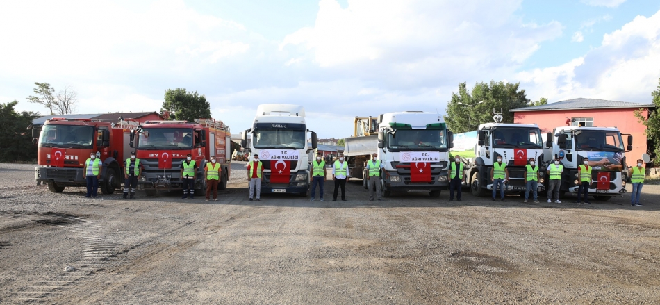Ağrı Valiliği bünyesinde görev alacak Valilik, il ve ilçe Belediyelerin iş birliği ile 3 dozer, 3 çekici, 2 arazöz, 2 itfaiye aracı ve 14 personel ile Manavgat ilçesinde yangın söndürmelerinde yoğun bir çaba harcamaktalar.