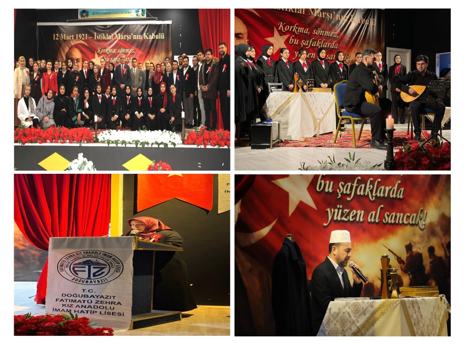 Doğubayazıt ilçesinde, 12 Mart İstiklal Marşı’nın kabulünün 105. yıl dönümü ve milli şair Mehmet Akif Ersoy’u anma programı düzenlendi. Doğubayazıt Kaymakamlığı, İlçe Milli Eğitim Müdürü Davut Şen, Okul Müdürü Hacer Yaşar ve Müdür Yardımcısı Okan Akbaş iş birliğiyle hazırlanan etkinlik, ilçe protokolünün katılımıyla gerçekleşti.