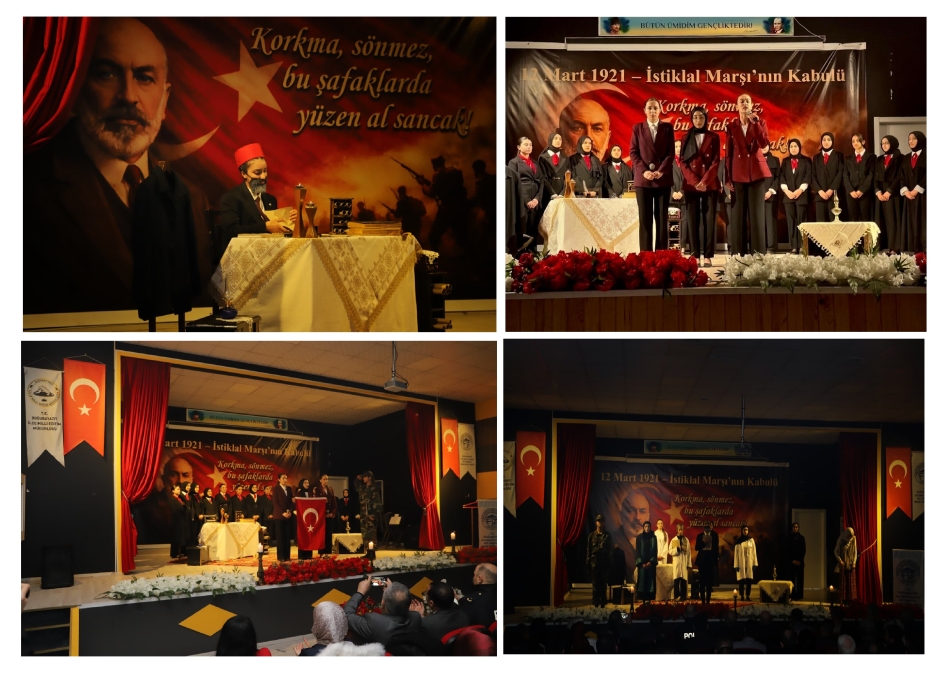 Programda öğrenciler tarafından sahnelenen pandomim gösterisi büyük beğeni toplarken, ardından “İstiklâl Marşı’na” isimli şiir okundu. Duygusal anların yaşandığı etkinlikte, İstiklal Marşı oratoryosu ve koro performansı katılımcılardan alkış aldı.
