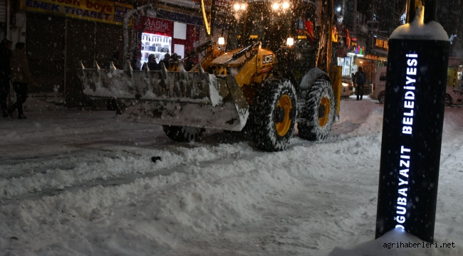 20.02.2025 günü öğlen saatlerinde başlayan ve gece boyunca devam eden kar yağışı ve tipi ile beyaza bürünen Doğubayazıt’ta, Belediye ekipleri sabaha kadar kar mesaisi yaptı.