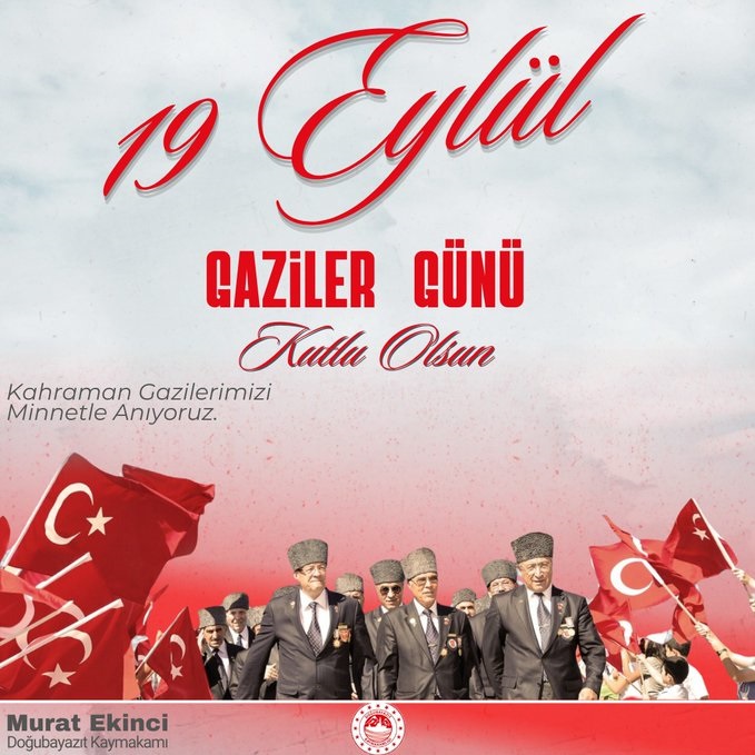DOĞUBAYAZIT KAYMAKAM MURAT EKİNCİ, 19 EYLÜL GAZİLER GÜNÜ" DOLAYSIYLA BİR MESAJ YAYIMLADI.
