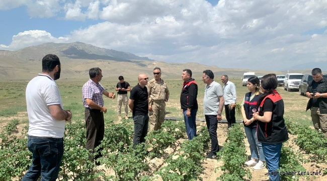 Kaymakam Murat Ekinci, Ağrı İl Jandarma Alay Komutan Yardımcısı Yasin Berçin ve Tarım İlçe Müdürü M. Salih Akkuş ile beraber üretim yapan çiftçilerden Barındı Köyünden Salih Kızılboğa, 180 dönüm ayçiçeği, 60 dönüm patates ektiği bahçesini ziyaret etti.