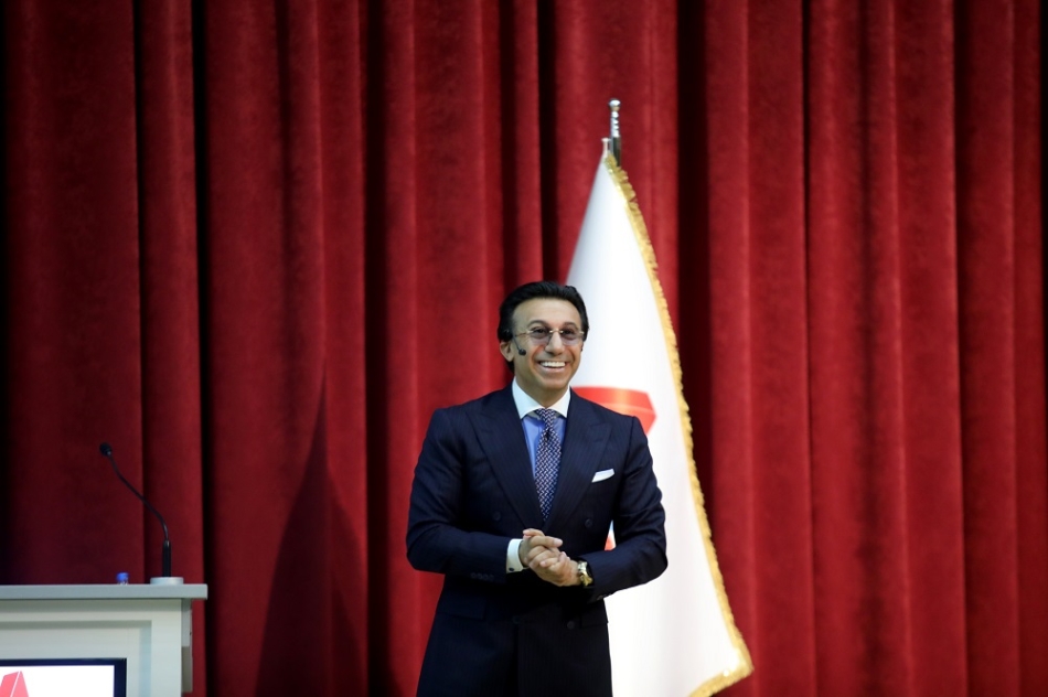 “Başarılı Bir İşin Sırrı” Konferansı’nda konuşan Dosso Dossi Holding Yönetim Kurulu Başkanı Hikmet ERASLAN, “Beş sektörde faaliyet gösteren Holdingimiz, Türkiye’de ihracat sıralamasında 40. sırada yer almaktadır. Yaklaşık 30 bin istihdam sağlamaktayız. Show’u Business (iş) için kullanıyoruz. Holding olarak 300 markanın ürününü 40 ülkeye pazarlıyoruz. İş ile tatili birleştiren, yüzlerce markayı binlerce müşteri ile buluşturan dev bir organizasyon olan Dosso Dossi Fashion Show dünyanın en büyük moda etkinliklerinden biri oldu. Bu yola çıkarken başarısız olmaktan hiçbir zaman korkmadım. Çünkü başarıya giden yol başarısızlıktan ve bu süreçten aldığınız tecrübelerden geçmektedir. Sizlere tavsiyem, kendinizi donanımlı bireyler olarak yetiştirin, cesur olun, hayatı kovalayın ve kararlarınızın arkasında durun. Sizleri gelecekte başarılı bir rakip olarak görmek istiyorum” diye konuştu.