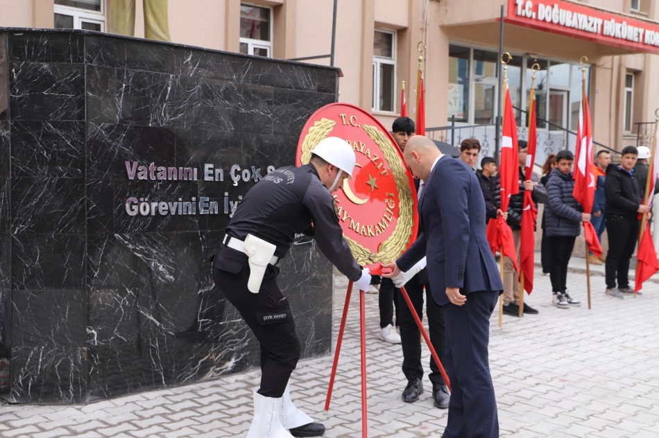 Doğubayazıt'ta 18 Mart Çanakkale Zaferi'nin 109. Yıl Dönümü etkinlikleri, Doğubayazıt Hükümet Konağı bahçesinde Atatürk anıtına çelenk sunumuyla başladı.