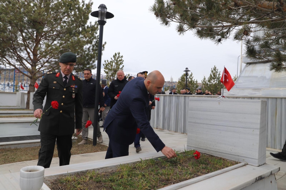 Törende protokol heyeti Doğubayazıt Şehit Mezarlığına giderek okunan Kur’an’ı Kerim tilaveti ve dualar eşliğinden şehitlerin mezarlarına karanfiller bıraktı.