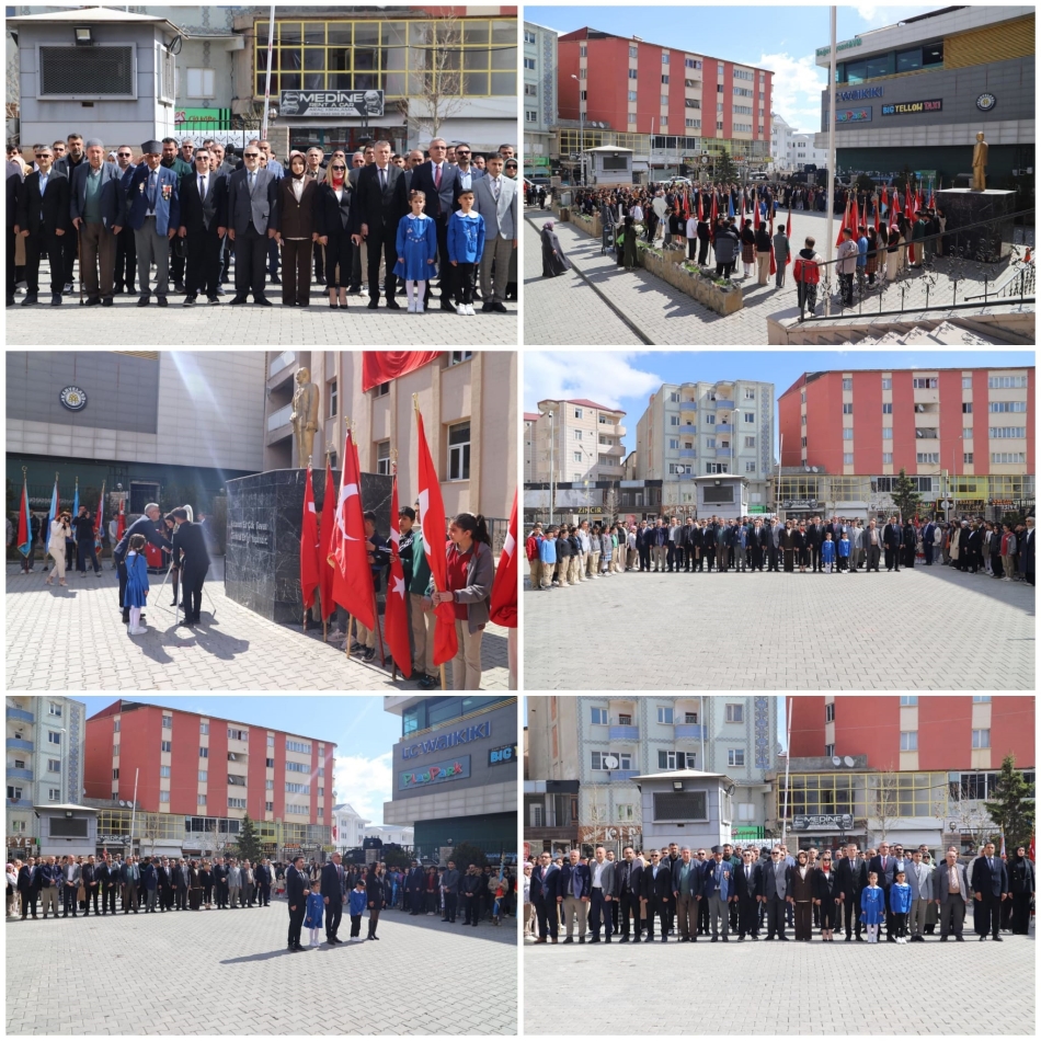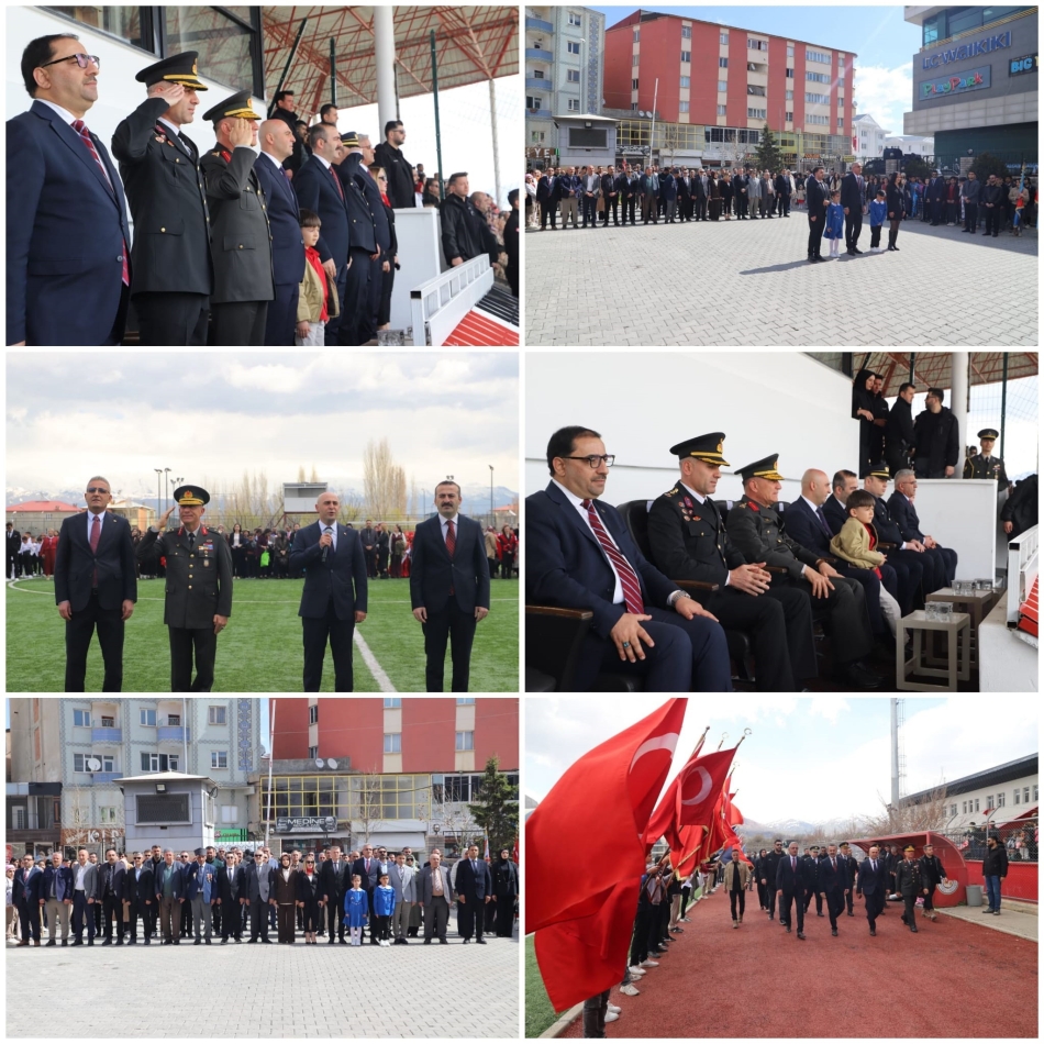 Sabah saat 09.30’da Hükümet Konağı bahçesinde düzenlenen ilk törenle başlayan kutlamalar, İlçe Milli Eğitim Müdürü Davut Şen ve iki öğrenci tarafından Atatürk Anıtı’na çelenk sunulmasıyla başladı. Ardından Saygı Duruşu ve İstiklal Marşı’nın okunmasıyla birlikte tören tamamlandı.