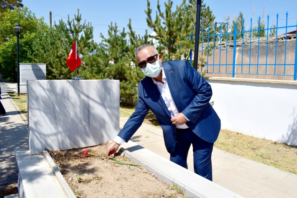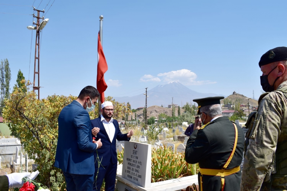 Heyet saat 11.00 sularında Doğubayazıt Şehitliğine ziyarette bulundu. Okunan Kur’an-ı Kerim tilavetinin ardından dualar eşliğinde şehit mezarlarına karanfiller bırakıldı.