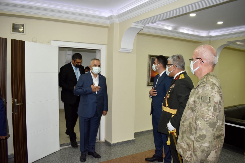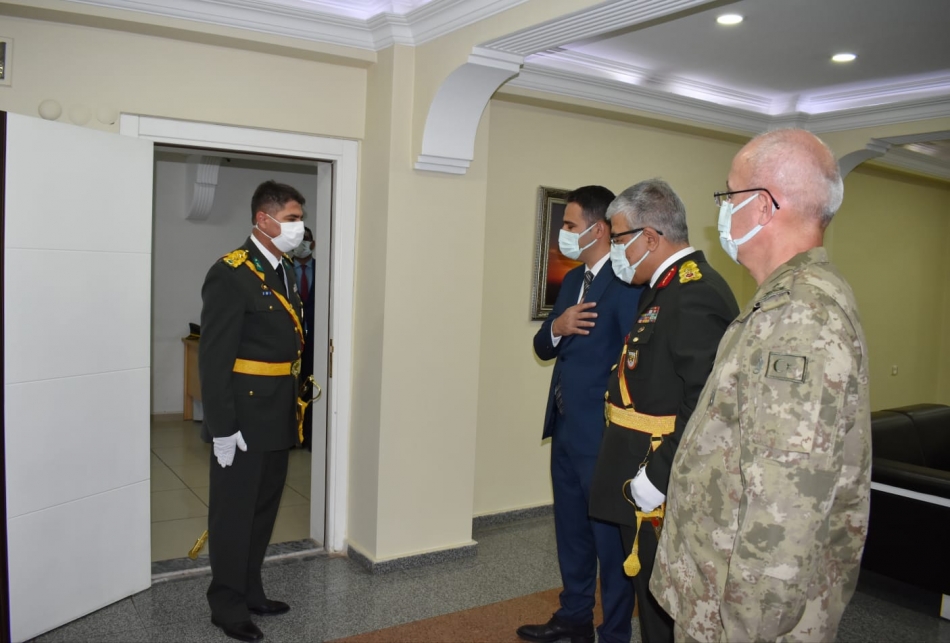 Doğubayazıt Kaymakamı Mehmet Kemal Akpınar Kaymakamlık makamında törene katılanların bayram tebriklerini kabul etti.