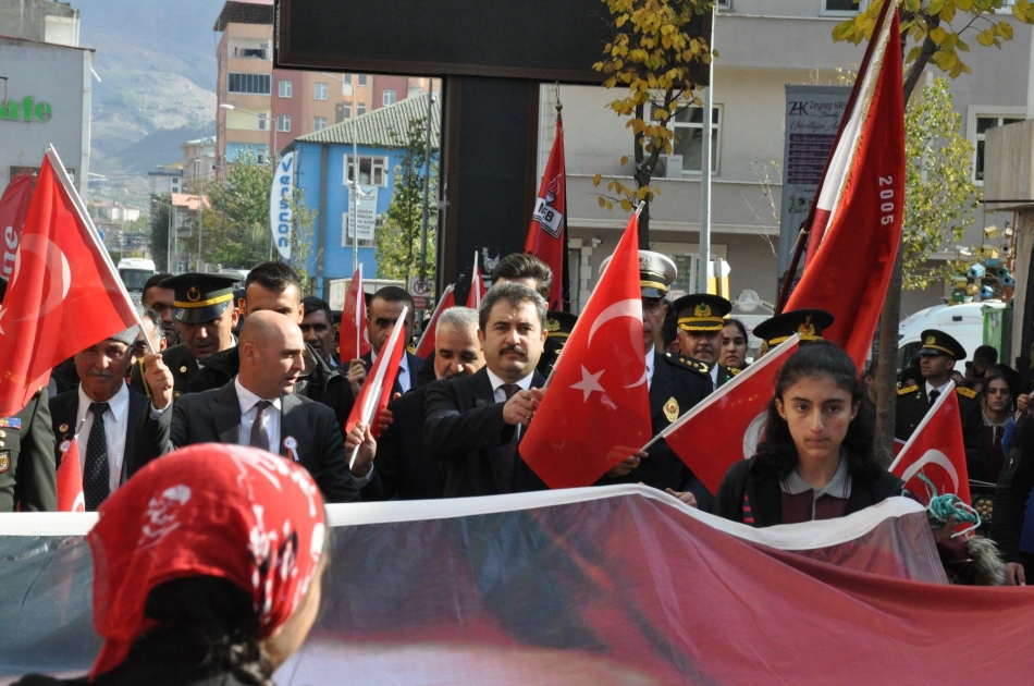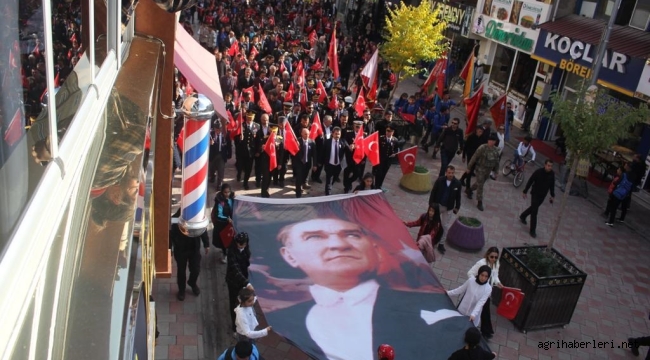 Doğubayazıt Kaymakamlığı önünde 29. Ekim Cumhuriyet Bayramı programına katılan heyet ve öğrencilerin katılımıyla başlayan Bayrak Yürüyüşü, İsmail Beşikçi caddesinde vatandaşlar tarafından yoğun bir katılım ile binlere ulaştı.