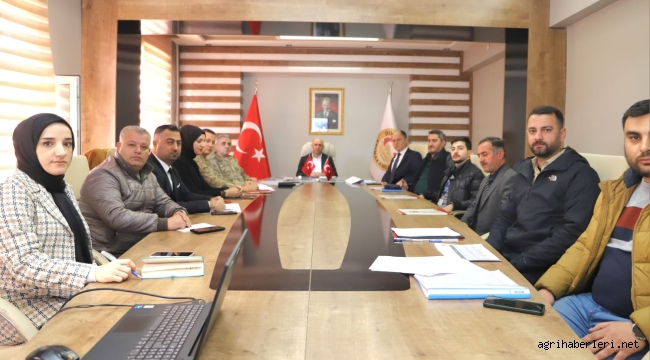 Doğubayazıt ilçe Kaymakamı Murat Ekinci başkanlığında, ilgili kurum amirlerinin katılımıyla 31 Mart 2024'te yapılacak olan Mahalli İdareler, Mahalle Muhtarlıkları ve İhtiyar Heyeti genel seçimlerine yönelik çalışmalar ele alınıp, Seçim Güvenliği Toplantısı yapıldı.