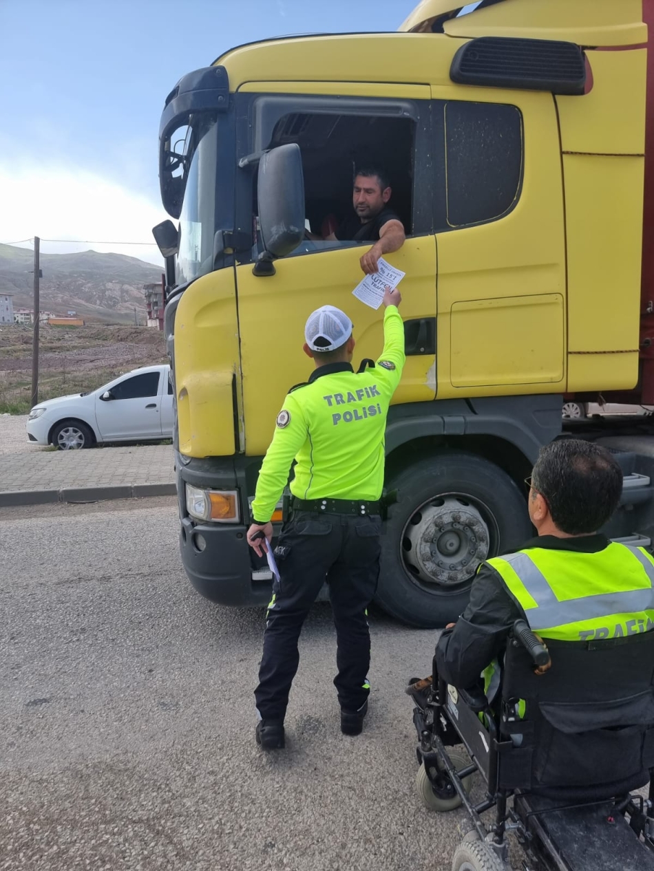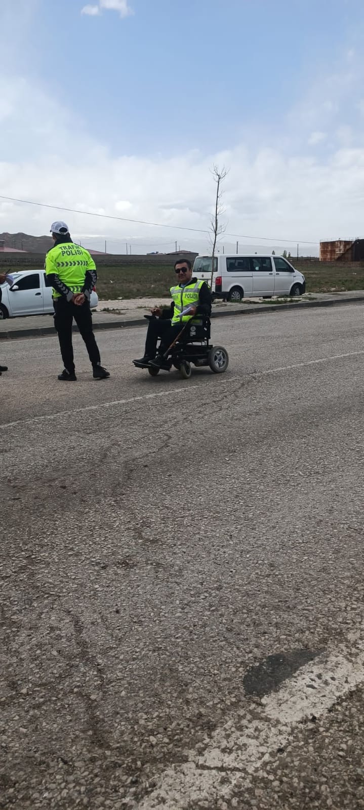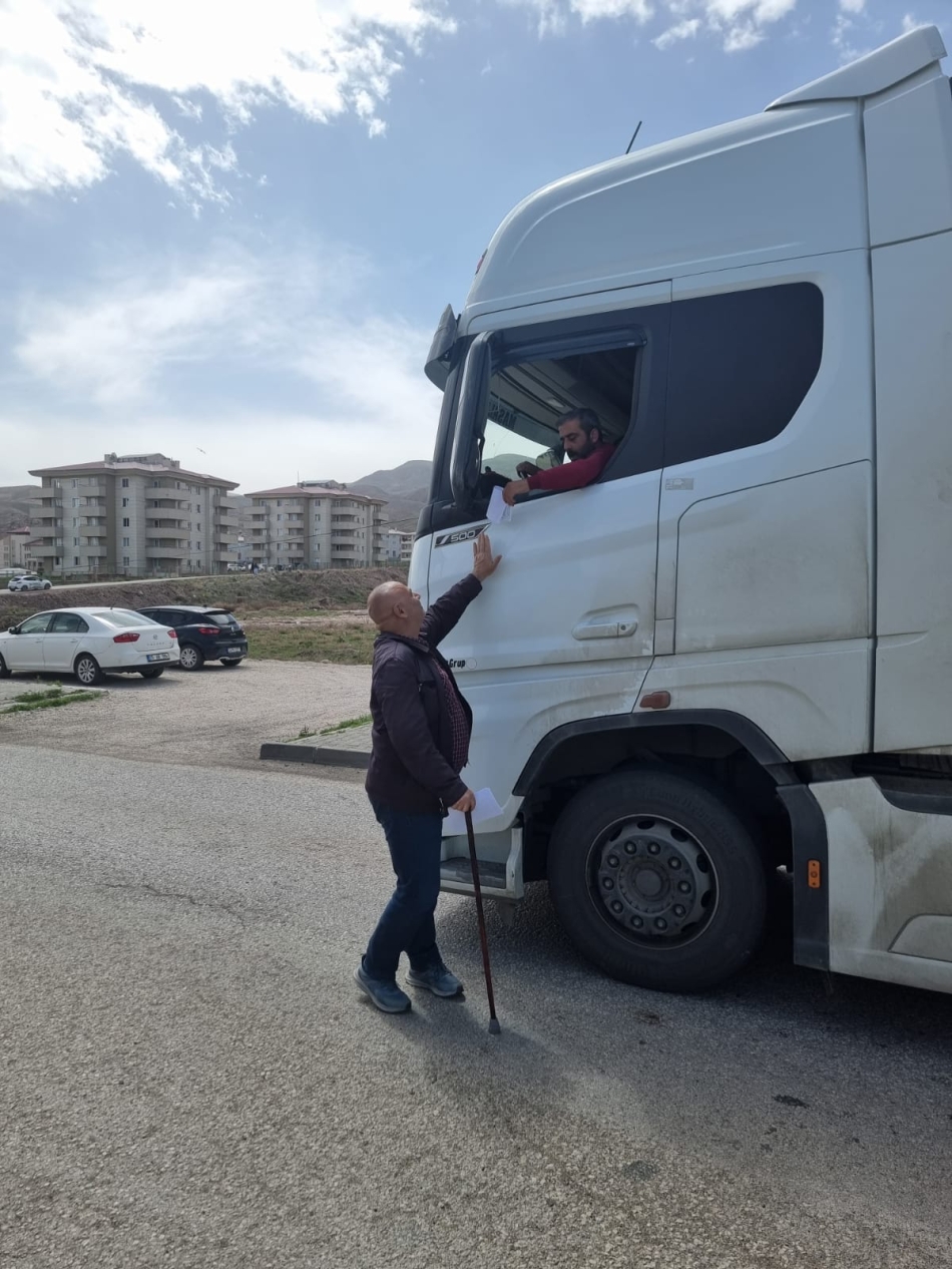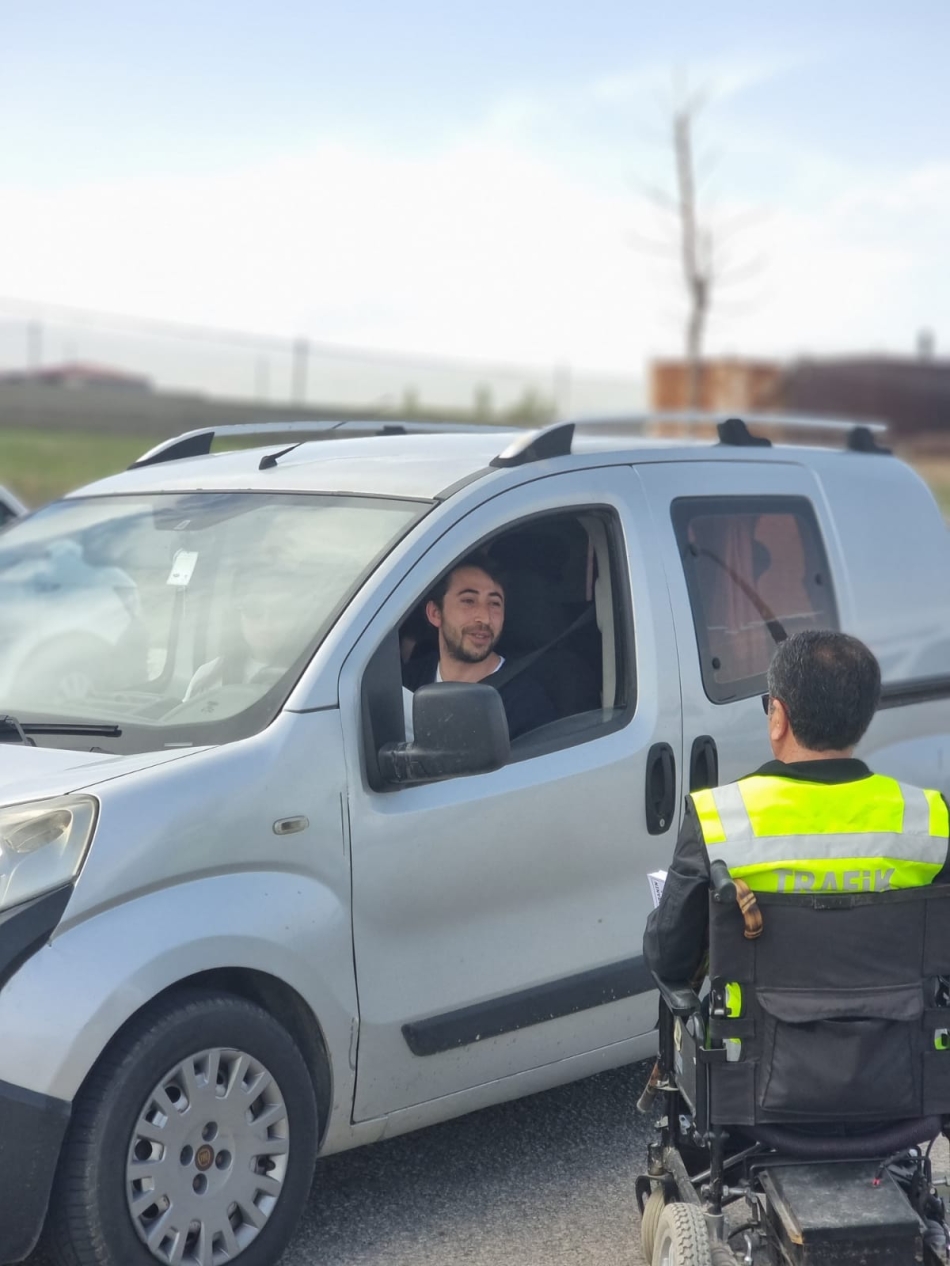 Yaşama Sevinci Doğubayazıt Engelliler Derneği Başkanı Oktay Topçu, Doğubayazıt’ın girişinde bulunan kontrol noktasında, Trafik polisleriyle birlikte yeleğini giyerek sürücüleri durdurup bilgilendirme yaptı. Başkan Topçu, Trafik polisleriyle birlikte 2-8 Mayıs Trafik Haftası dolayısıyla engelli bireylerin trafikte karşılaştıkları sorunlara dikkat çekmeye yönelik broşürler dağıtıldı.