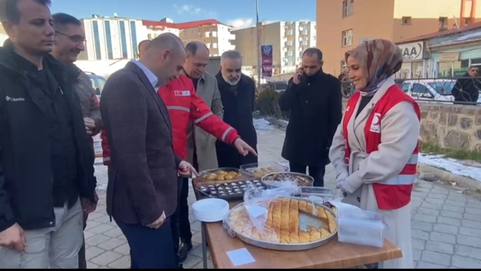 Doğubayazıt İlçe Kaymakamı Murat Ekinci ve protokol üyeleri, Kızılay kermesini gezerek ürünleri inceleyip yapımında emeği geçenlere teşekkür ederek kermeste bulunan ürünlerden alıp Filistinli çocuklara destek oldular.